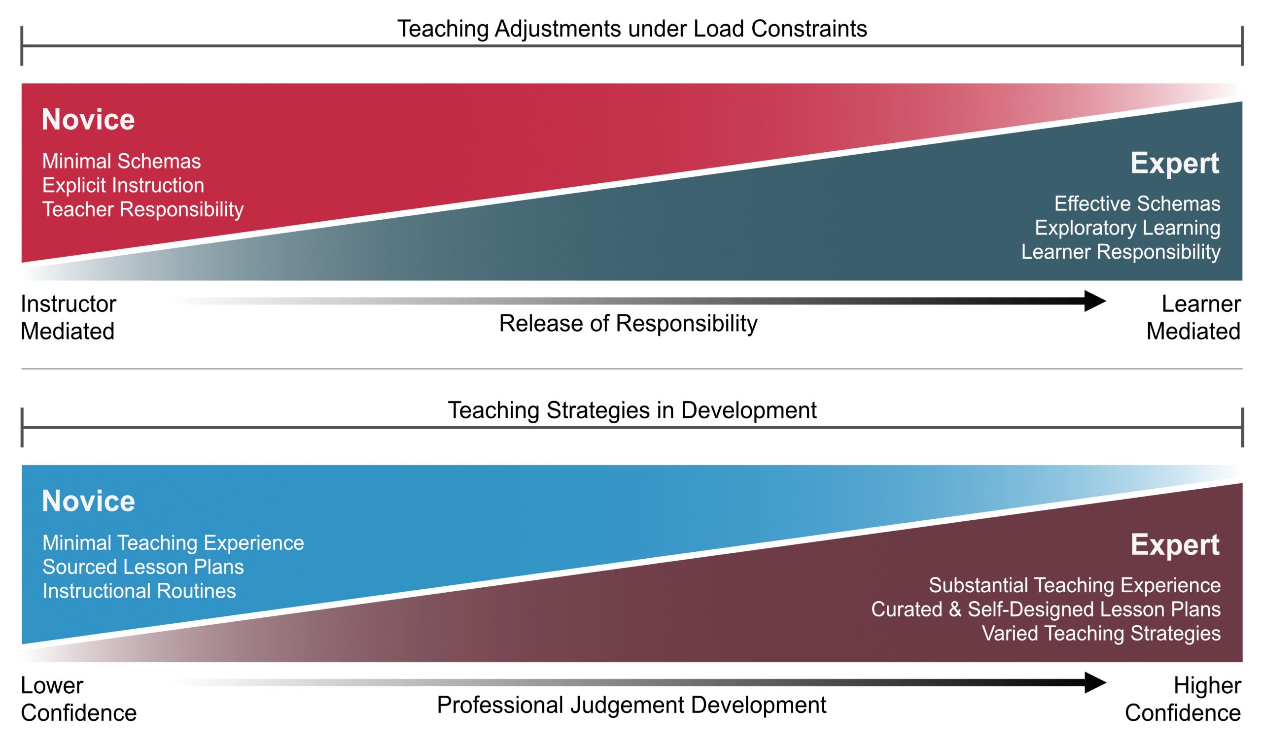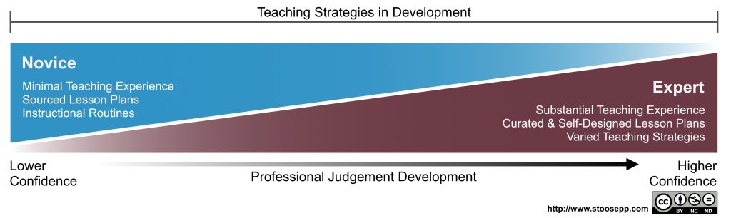 Having never been a teacher myself (I’m a cognitive science researcher and learning designer), I had to consider the foundational need for teacher professional judgement here – that teachers do know best how to teach their students because they have content and pedagogical expertise and they have knowledge of who their students are and where they’re at. But what about beginning teachers – teachers who are just learning how to teach and support their students who may have a professional judgement that is still developing? Well, this is who many of the state and national resources are for (as well as practicing teachers who are new to practices informed by learning sciences) and to capture, this I took the same approach- as teachers / educators, we are all learners in our own right. We need specific instruction and supports on how to do the same for our students in the classroom. As we develop our own teaching identities, and our own self-efficacy as a teacher, we move away from being a novice teacher to someone who doesn’t need to rely on guidance so heavily.
